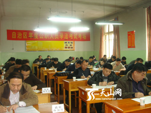 天山网讯(实习记者王丽丽摄影报道)今天(12月12日)下午,自治区举行全区公职人员法律知识考试。据不完全统计,全区共有近30余万各族公职人员参加了此次考试,仅乌鲁木齐地区参加考试的人数就达6万余名,其中参加自治区统一考试的厅局级领导干部达200余名。