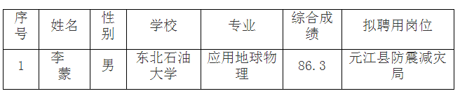 [图文]2015云南元江县防震减灾局提前拟聘名单公示