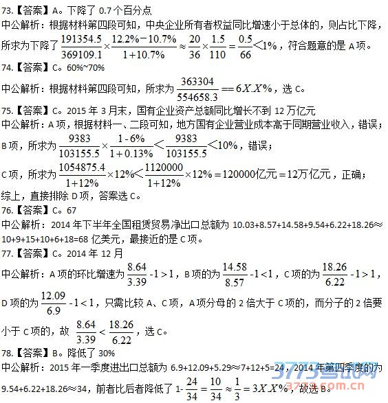 中公解析:根据材料第二段可知,总成本同比下降5.1%,题干中涉及三项的同比增速依次为下降2.9%、增长2.3%和增长7.3%,均大于总成本同比增速,因此占比均同比上升,选D。