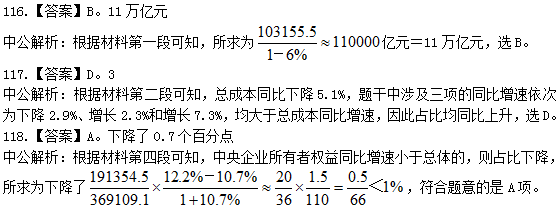 115.【答案】B。2015年2月,全国每百万件快递业务中,非有效申诉不到1件