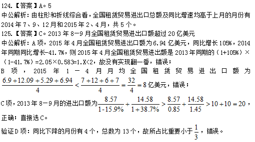 中公解析:2015年1月的企业1丢失损毁申诉量为23.79÷(1+49%),企业2为8.89÷(1+87%),明显可见企业1>企业2,排除A、C;企业3为7.07÷(1+114%)≈3.5,企业4为6.37÷(1+55%)≈4.1,故企业4>企业3,排除B,故答案选D。
