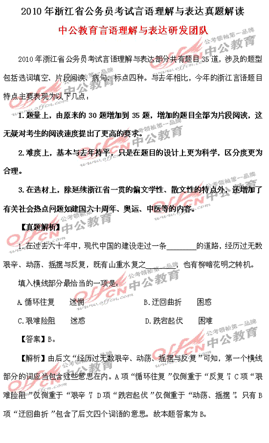 [组图]2010年浙江公务员考试言语理解与表达真题及答案解析