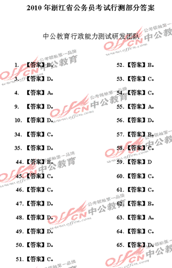 [图文]2010年浙江公务员考试行测真题答案