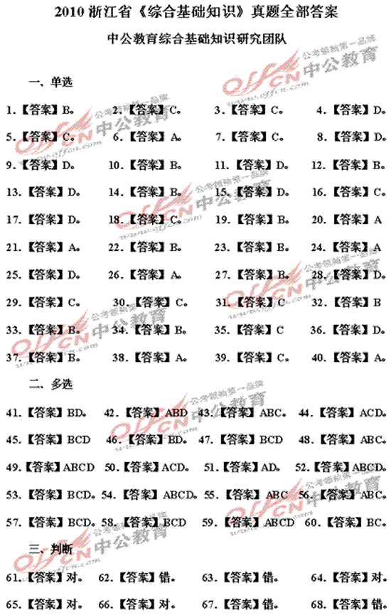 [图文]2010年浙江公务员考试综合基础知识真题答案