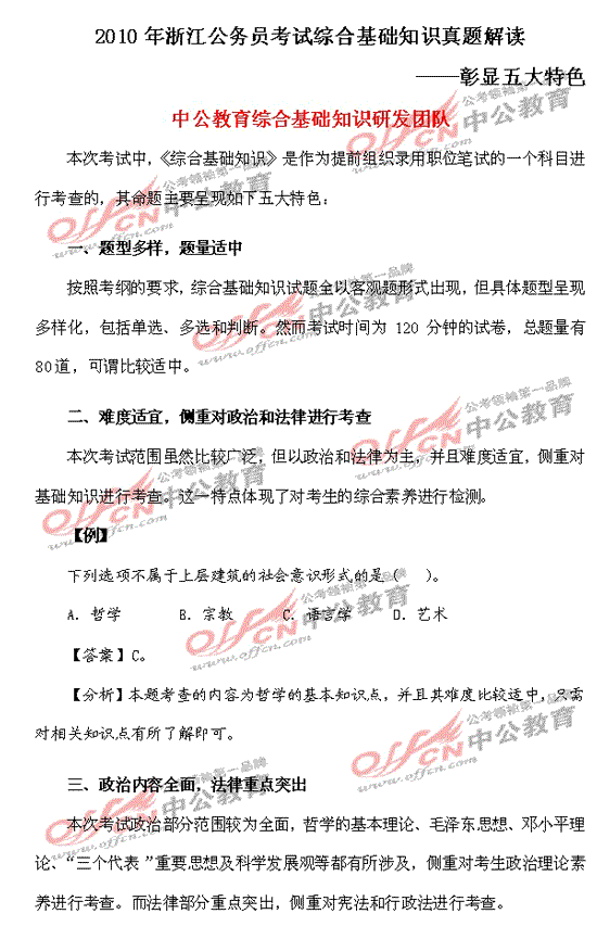 [组图]2010年浙江公务员考试综合基础知识真题解读