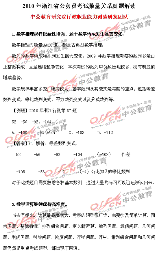 [图文]2010年浙江公务员考试行测数量关系真题解读