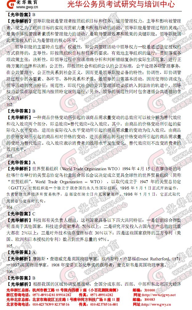 [组图]2010年浙江公务员考试行测真题答案(光华)
