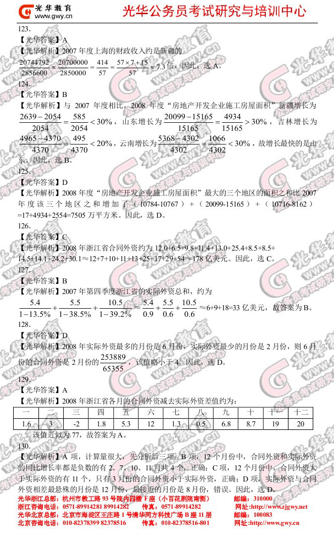 [组图]2010年浙江公务员考试行测真题答案(光华)