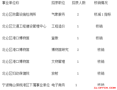 [图文]2014浙江宁波北仑区、梅山保税港区事业编制人员招聘指标核销公告