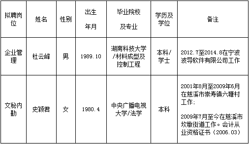 2、对上述拟聘用人员如有异议,请向宁波市经信委组织人事处或监察室反映。组织人事处联系电话:0574—89186467,联系人:汪东芳;监察室联系电话:0574-89186423,联系人:楼飞君。