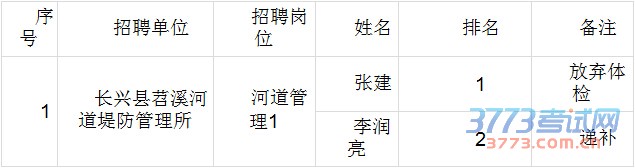 [图文]2015浙江长兴县属事业单位招聘递补体检名单