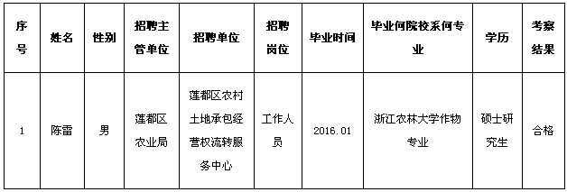 根据浙江省人事厅关于印发《浙江省事业单位公开招聘人员暂行办法的通知》(浙人才〔2007〕184号)和《2015年浙江省丽水市莲都区赴山东人才引进招聘公告》精神,经面试、体检、考察等程序,确定陈雷为2015年浙江省丽水市莲都区赴山东人才引进招聘拟聘用工作人员,现予以公示,征求广大干部、群众的意见,有关事项通知如下: