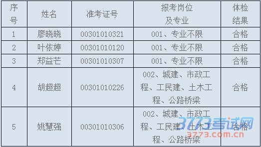 根据《2015年鹿城区房屋征收管理办公室面向社会公开招聘事业工作人员公告》要求,经统一组织体检,现将入围考察人员名单公布如下: