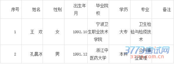 [图文]2015浙江湖州市长兴县疾病预防控制中心编外人员拟录公示
