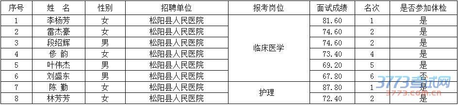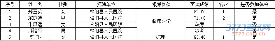 [组图]2015浙江丽水松阳县事业单位招聘面试成绩及体检名单