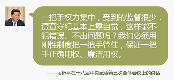 一把手位高权重,一旦出问题,最容易带坏班子、搞乱风纪。一把手权力集中,受到的监督很少,遵章守纪基本上靠自觉,这样能不犯错误、不出问题吗?我们必须用刚性制度把一把手管住,保证一把手正确用权、廉洁用权。这不是对干部要求苛刻,而是爱护和保护干部。领导干部要自觉接受组织和群众监督,这对自己有好处,可以警醒自己始终秉公用权,避免跌入腐败的陷阱。