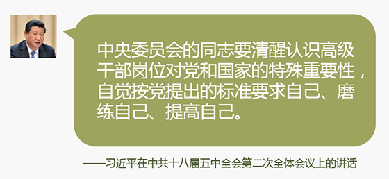 中央委员会的同志要在党言党、在党忧党、在党为党,带好头、做好表率。大家要清醒认识高级干部岗位对党和国家的特殊重要性,自觉按党提出的标准要求自己、磨练自己、提高自己。职位越高,越要夙兴夜寐工作,越要毫无私心把自己的一切奉献给党和人民,越要按规则正确用权、谨慎用权、干净用权,越要像珍惜生命一样珍惜名节和操守,扎扎实实改造主观世界,诚心诚意接受监督帮助,努力使自己成为一名党和人民信赖的好干部。