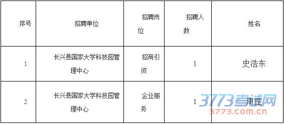 [图文]浙江湖州市长兴县国家大学科技园管理中心2016招聘体检名单