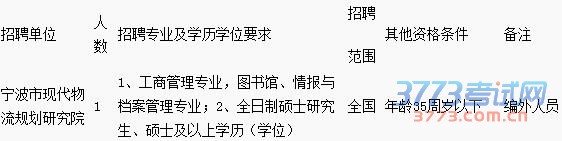 宁波市现代物流规划研究院(宁波市交通发展研究中心)为宁波市交通运输委员会直属的纯公益性事业单位,经费预算形式为财政全额补助,机构规格相当于行政副局级。主要从事现代物流与交通战略研究、规划研究和编制、决策咨询研究等工作。