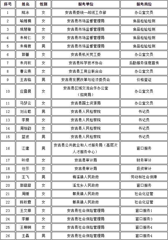 [图文]浙江安吉县机关事业单位2016上半年招录编外人员体检名单