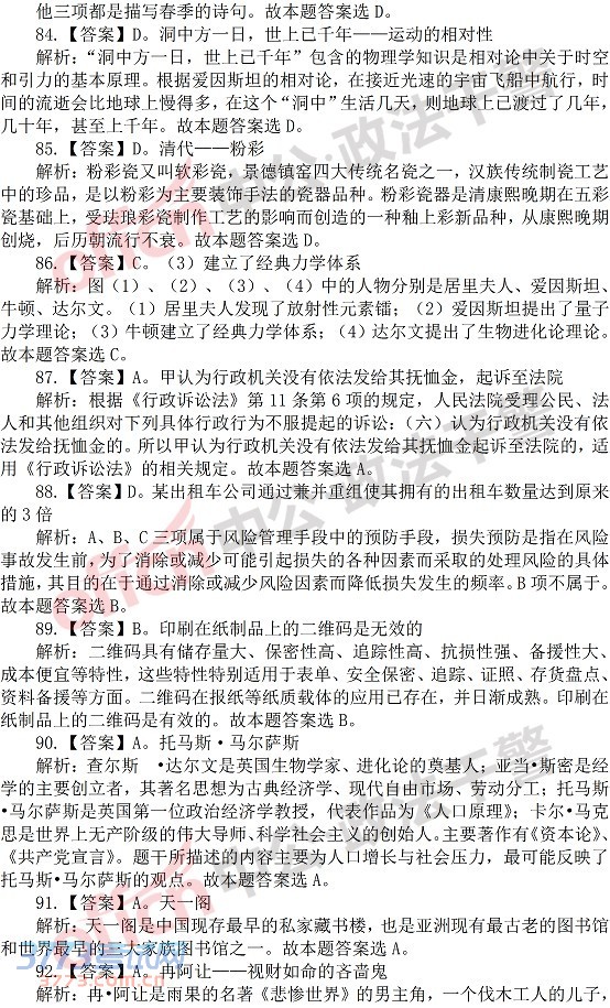 [组图]安徽政法干警考试2014年(本硕)行测答案解析