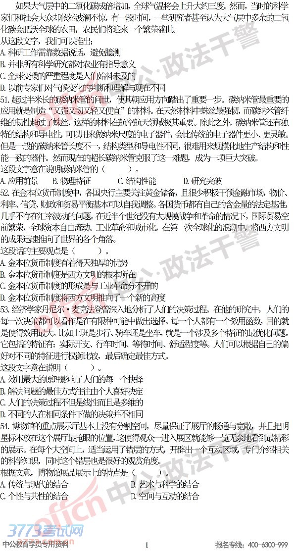 [组图]重庆政法干警考试2014年行测(本科)真题