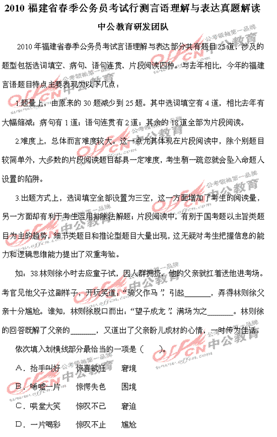 [组图]2010福建春季公务员考试行测言语理解真题答案解析