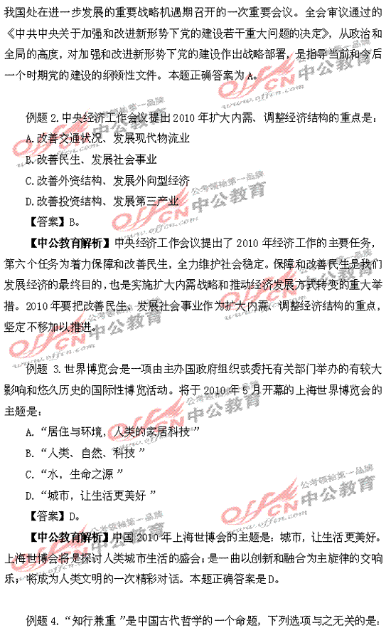 [组图]2010福建春季公务员考试行测常识判断真题答案解析