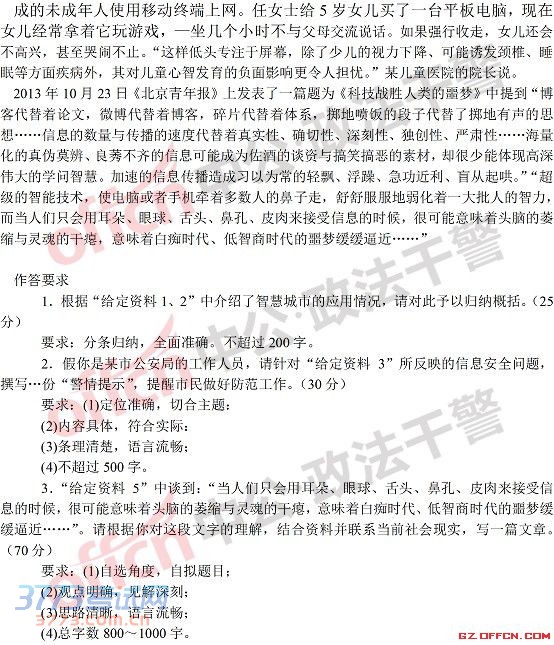 [组图]2014年贵州政法干警考试申论(专科)真题