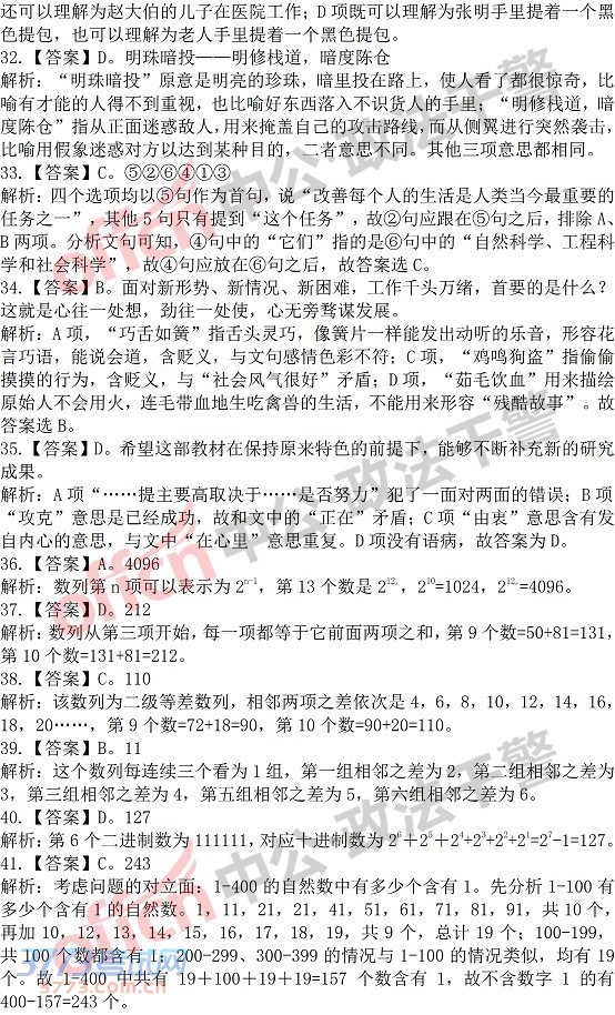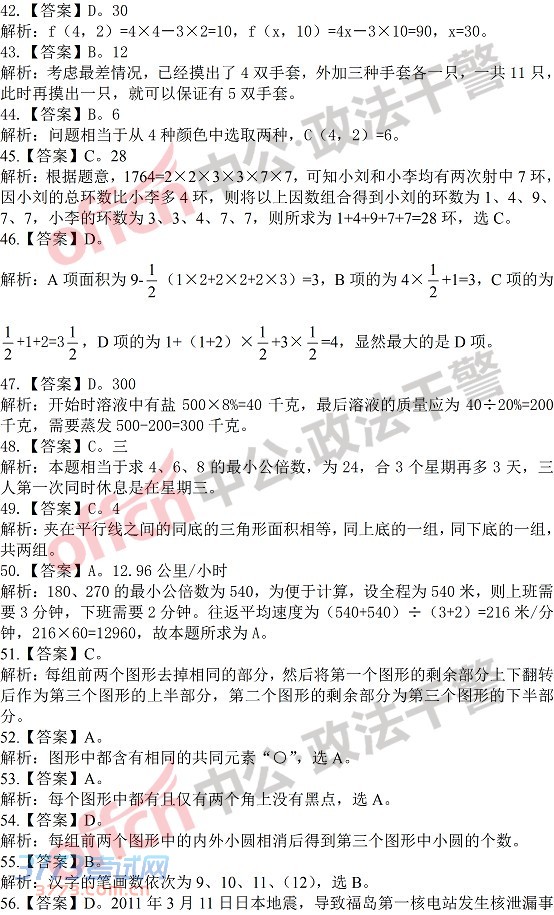 [组图]河北政法干警考试2014年行测专科真题答案解析