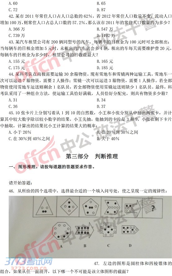[组图]2014年河南政法干警行测(本硕)真题-判断推理
