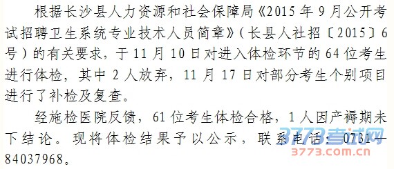 [图文]湖南卫生系统专业技术人员2015年9月招聘体检结果