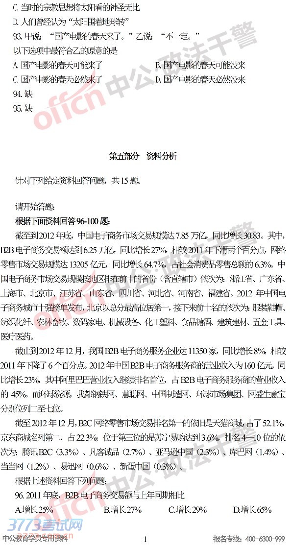 [组图]2014年吉林政法干警考试行测(本科)真题