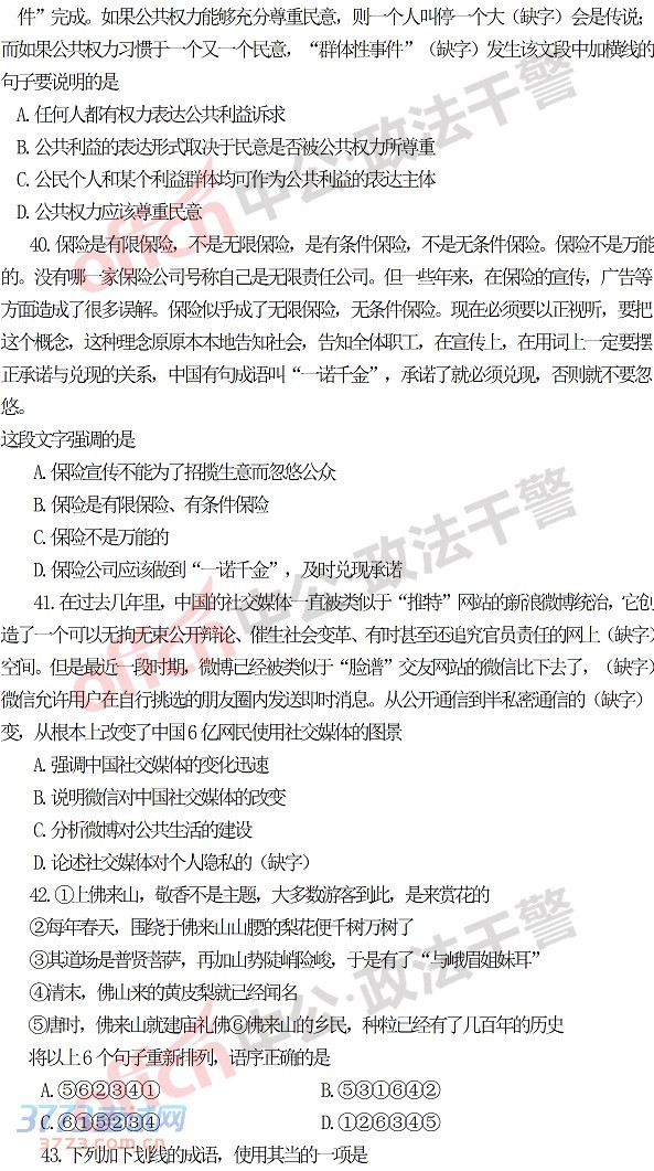 [组图]2014年吉林政法干警考试行测(本科)真题