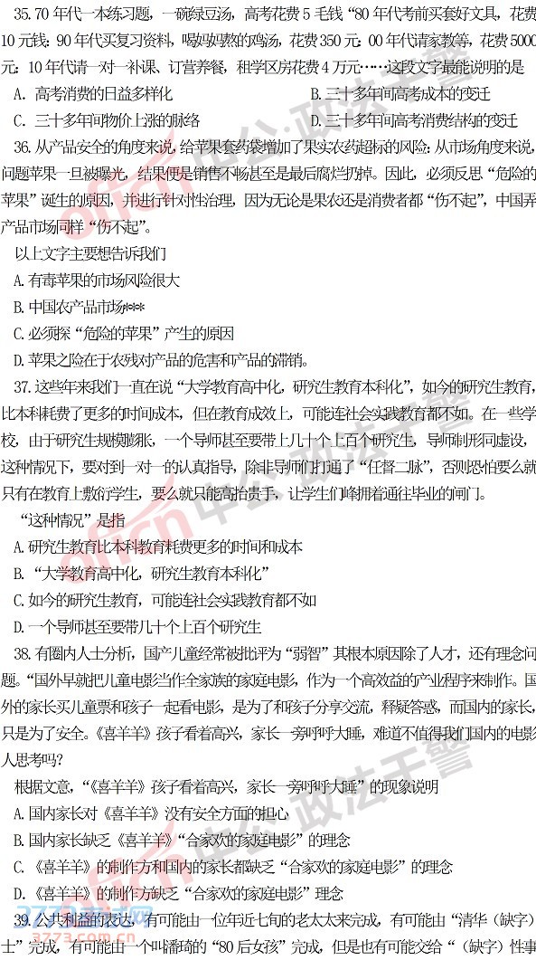 [组图]2014年吉林政法干警考试行测(本科)真题-言语理解及表达