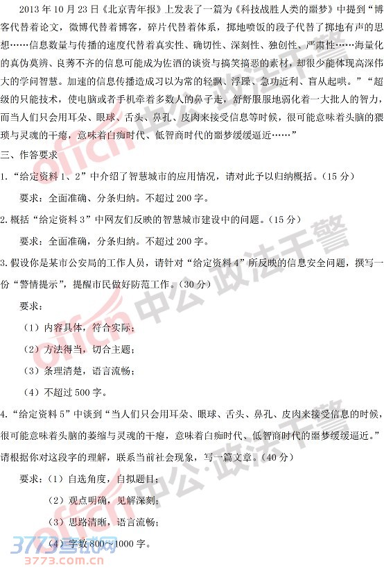 [组图]江西政法干警2014年考试申论(专科)真题