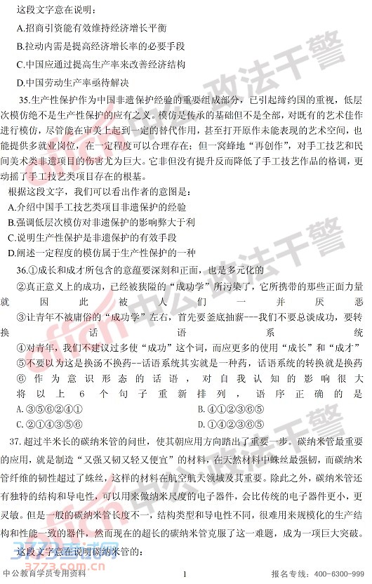 [组图]2014辽宁省政法干警行测(专科)真题
