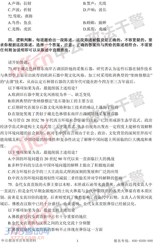 [组图]2014辽宁省政法干警行测(专科)真题-判断推理