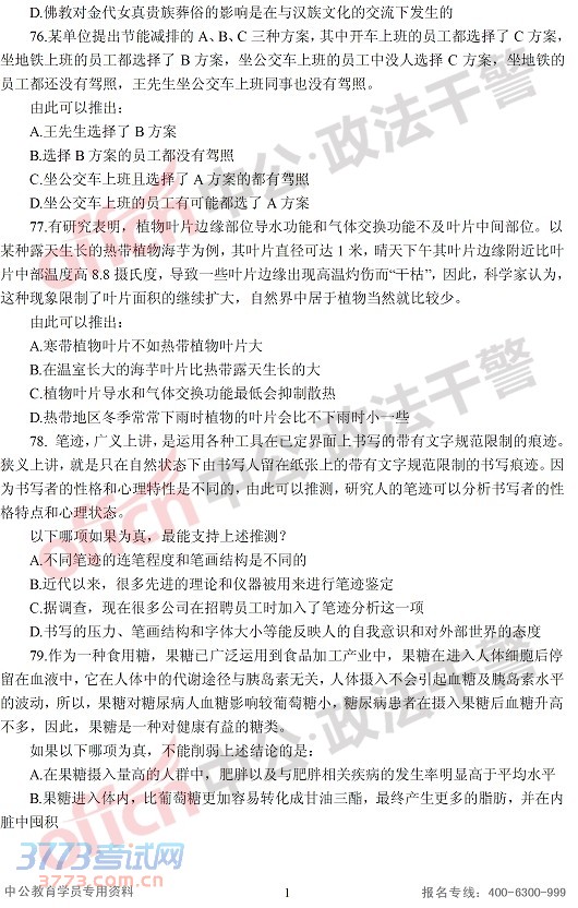 [组图]2014辽宁省政法干警行测(专科)真题-判断推理