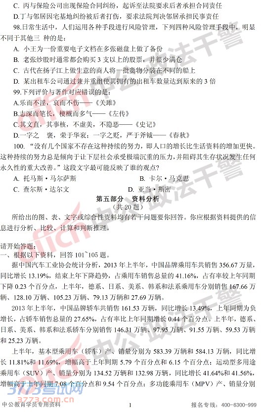 [组图]2014辽宁省政法干警行测(专科)真题-常识判断