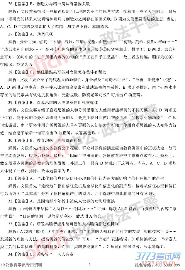 [组图]2015辽宁政法干警行测真题答案及解析(硕士)
