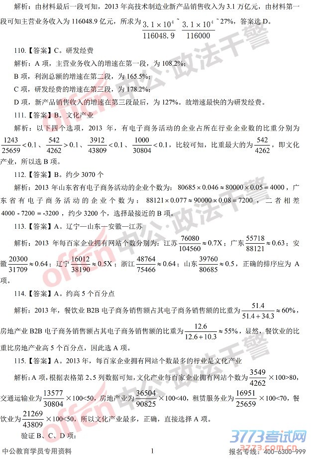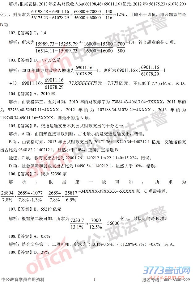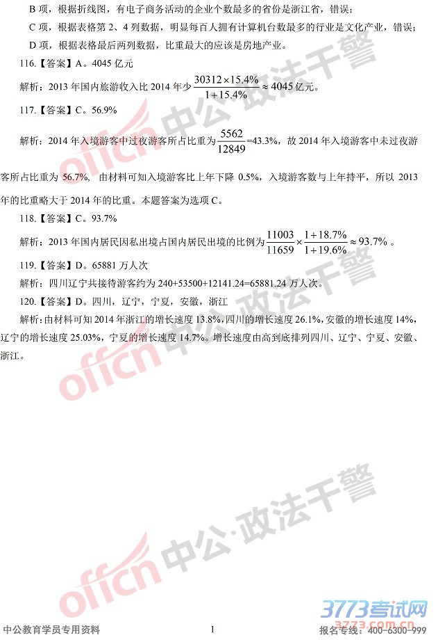 [组图]2015辽宁政法干警行测真题答案及解析(硕士)