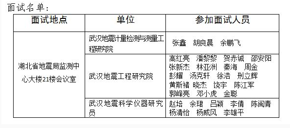 地 点:湖北省地震局监测中心大楼21楼(参加面试人员可乘522路、587路、606路公共汽车到茶港小区站下车)。
