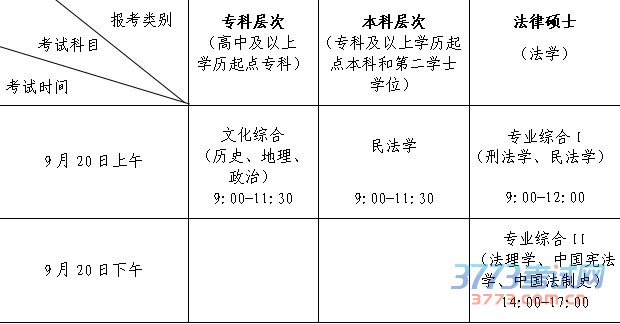 教育入学考试由自治区教育招生考试中心协助自治区人事考试中心组织实施。教育考试科目由教育部根据国家统一高等院校入学考试模式,结合试点班特点按层次确定,报考专科的考生需参加文化综合(历史、地理、政治)的考试;报考专科及以上学历起点本科和第二学士学位的考生需参加民法学的考试;报考法律硕士专业学位研究生的考生需参加专业综合I(刑法学、民法学)、专业综合II(法理学、中国宪法学、中国法制史)的考试。考试范围以《考试大纲》为准。
