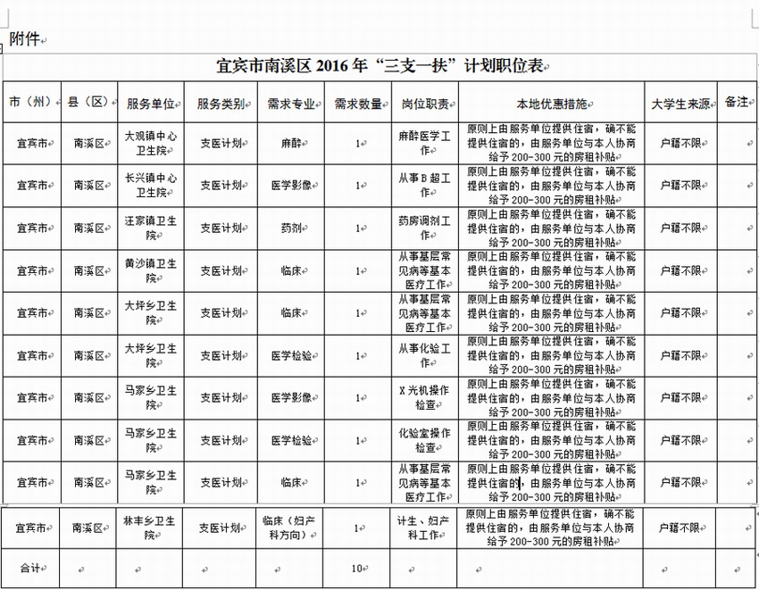 附件:宜宾市南溪区2016年“三支一扶”计划职位表