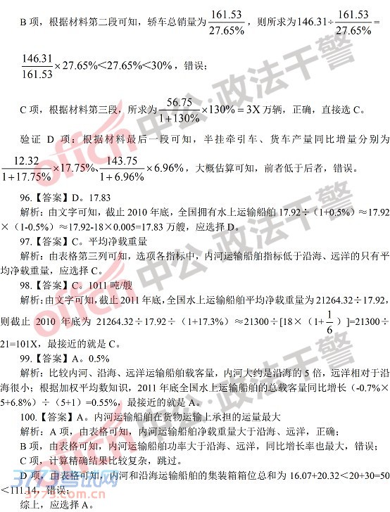 [组图]2014年四川政法干警行测(本硕)答案解析