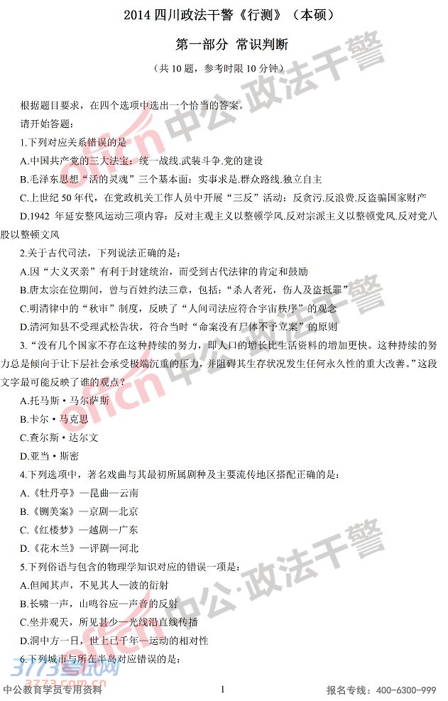 [组图]2014年四川政法干警行测(本硕)真题-常识判断