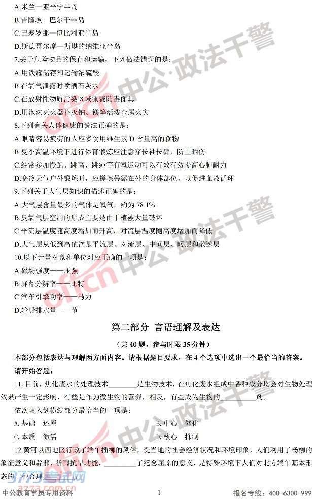 [组图]2014年四川政法干警行测(本硕)真题-常识判断