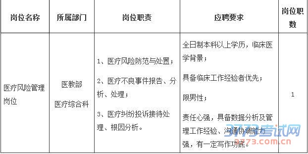 因工作需要,我院医教部医疗综合科现面向全国公开招聘工作人员1名,具体要求如下: