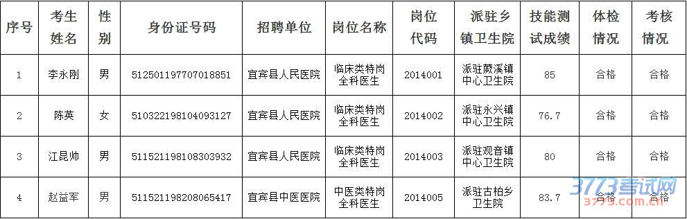 [图文]2015四川宜宾县特设岗位全科医生招聘拟聘公示